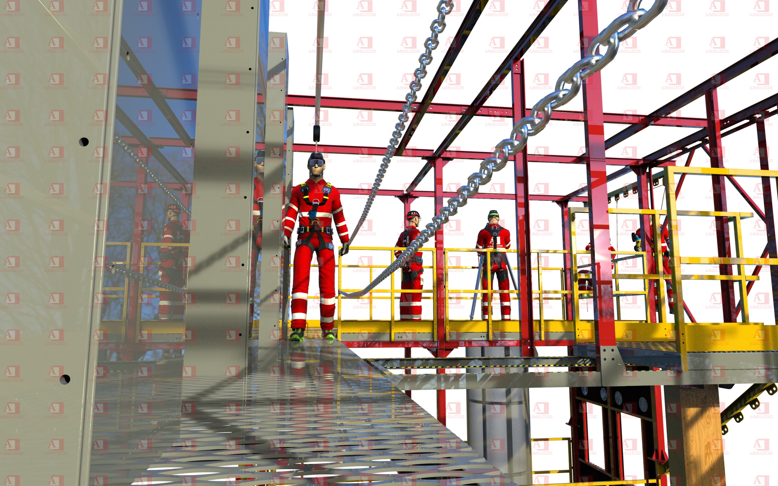 •  Подъём по металлоконструкции с применением вертикальной гибкой анкерной линии;